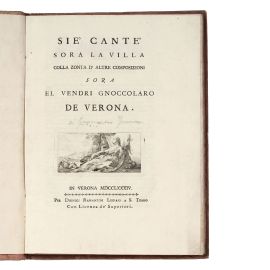 (Verona - Carnevale) [GNOCCOLARO]. Siè cantè sora la villa colla zonta d'altre composizioni sora el vendri gnoccolaro de Verona. Verona, per D. Ramanzini, 1784.