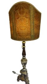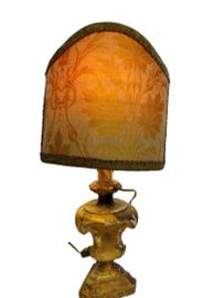 Gruppo di 3 lumi in legno argentato e dorato composto da una coppia con supporti torniti a balaustro e basi triangolari, sec. XIX, h cm 50 e un lume più piccolo a vaso, h cm 26, gravi danni