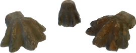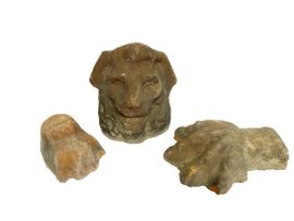Grande gruppo di sotto-vasi in terracotta di cui 18 in forma di testa e 6 in forma di zampe di leone, mancanze sparse, teste h cm 19x25 circa e zampe h cm 7x22 circa