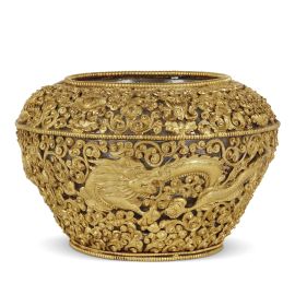 藏 十九至二十世纪 水晶铜鎏金镂空八宝云龙纹包镶钵 高 11厘米 直径 16,3厘米