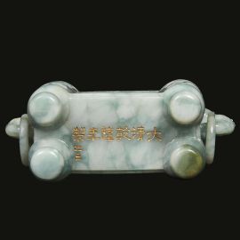 in giadeite a forma arcaica tulu con pareti rettangolari lavorate con draghi stilizzati, coperchio con drago a rilievo.