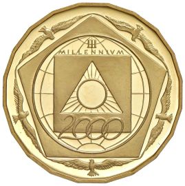 MEDAGLIA “III MILLENNIO” CONIATA DALL’ISTITUTO POLIGRAFICO E ZECCA DELLO STATO OPUS CRETARA REALIZZATA IN ORO 917 E CORREDATA DA 20 DIAMANTI
