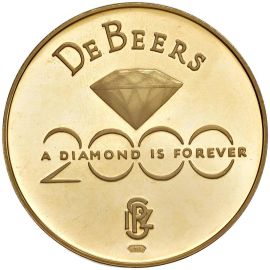 MEDAGLIA DE BEERS IN ORO 917 CORREDATA DA CINQUE DIAMANTI OPUS L. CRETARA