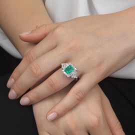 EMERALD AND DIAMOND RING IN 18KT WHITE GOLD
