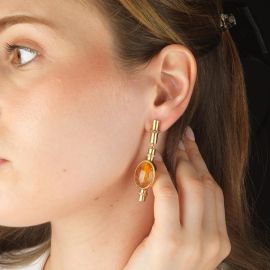 LONG DROP AMBER EARRINGS IN 18KT YELLOW GOLD