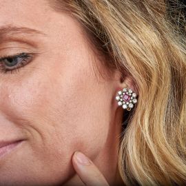 PAIO DI ORECCHINI FLOREALI CON RUBINI E DIAMANTI