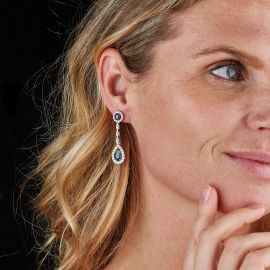 PAIO DI ORECCHINI PENDENTI CON ZAFFIRI E DIAMANTI
