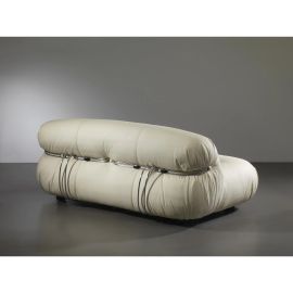 A «SORIANA» SOFA, METAL STRUCTURE, WOOD AND FOAM, WHITE LEATHER UPHOLSTERY