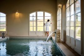 Propone pernottamento di 2 notti per 2 persone in una suite, inclusi: una cena per 2 persone con menù degustazione e abbinamento vini, accesso alla wellness Spa e alle piscine panoramiche, e per concludere una magnum di Raggio Brusa 2019 in cassa di legno.