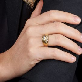 in oro giallo 18kt, impreziosito da diamanti taglio carré e brillante per ct 0.50 circa, punzone 750, mis. 10/50, gr. 6