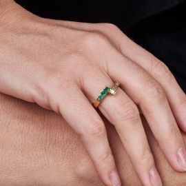 EMERALD AND DIAMOND CONTRARIE RING IN 18KT YELLOW GOLD
