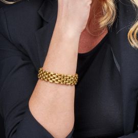 in oro a basso titolo, realizzato a maglia morbida con una serie di maglie concatenate, lungh. cm 19,5, gr. 40