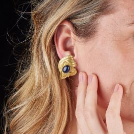 GLASS PASTE CLIP EARRINGS IN 18KT YELLOW GOLD