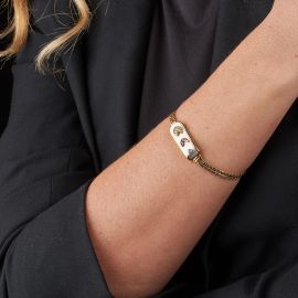 in oro giallo e bianco 18kt, impreziosita da rubini taglio navette per ct 0.50 circa e diamanti taglio brillante per ct 0.50 circa, composta da collana di lungh. cm 38, bracciale di lungh. cm 17,5, anello di mis. 12/52 e paio di orecchini di dim. cm 1x2 circa, con chiusura a clip, punzoni 750 e del fabbricante, gr. 61 complessivi
