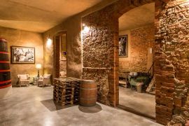 for 14 people on the large table located in the unique context of the barrel cellar,