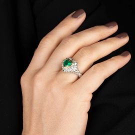ANELLO A FORMA DI CUORE CON SMERALDO COLOMBIANO E DIAMANTI