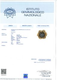 in oro rosa 18kt, impreziosito al centro da uno zaffiro kashmir taglio cuscino (smontato) di ct 4.47, circondato da rose di diamante per ct 0.55 circa, mis. 15/55, gr. 22. Corredato di certificato SSEF del 18/03/2024 e IGN del 13/02/2024 attestante l'origine geografica della pietra e l'assenza di trattamenti termici.