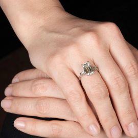 in platino, impreziosito da un diamante centrale taglio ottagonale (smontato) di ct 3.03, colore J, purezza Vs2, affiancato da due diamanti taglio baguette per ct 0.30 circa, mis. 10/50, gr. 4. Corredato di certificato IGN del 13/02/2024 attestante le caratteristiche.