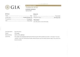 in oro bianco 18kt, realizzato a forma di goccia, impreziosito al centro da una tormalina paraìba taglio a goccia di ct 2.19, circondato da tormaline taglio rotondo per ct 0.90 circa, e da diamanti taglio brillante per ct 1 circa, punzone 750, mis. 13/53, gr. 10. Corredato di certificato GIA del 30/09/2019 attestante le caratteristiche della pietra centrale.