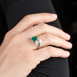COLOMBIAN EMERALD AND DIAMOND CONTRARIE RING IN PLATINUM