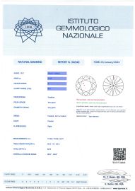 in oro bianco 18kt, impreziosito da un diamante centrale (smontato) di ct 5.10, colore K, purezza SI1, affiancato da diamanti taglio brillante per ct 1.50 circa, punzone 750, mis. 9/49, gr. 7. Corredato di certificato IGN del 23/01/2024 attestante le caratteristiche del diamante centrale.