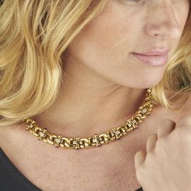 COLOURED STONE CHAIN NECKLACE IN 18KT TWO TONE GOLD