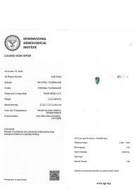 in oro bianco 18kt, impreziosita da diamanti taglio brillante per ct 0.90 circa, da cui pende un ciondolo a forma di goccia di cm 2x2,5, con al centro una tormalina Paraiba di ct 2.43, circondata da una fila di tormaline taglio rotondo per ct 0.40 circa e una di diamanti taglio brillante per ct 3 circa, punzone 750, lungh. cm 51,5, gr. 14. Corredata di certificato IGI Anversa del 16/11/2020 attestante le caratteristiche della tormalina.