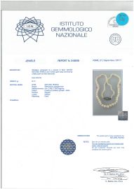 composta da un filo di perle naturali digradanti di mm 2,5-7 circa, fermatura in oro bianco 18kt, lungh. cm 37,5, gr. 8. Corredata di certificato IGN del 07/09/2017 attestante le caratteristiche.