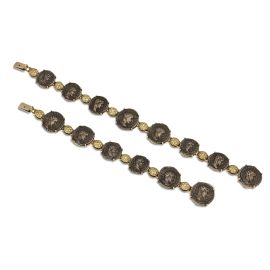 in oro giallo 18kt, composta da una serie concatenata di monete alternate ad elementi ovali impreziositi da diamanti fancy per ct 3.30 circa, da smontare e indossare anche come bracciale, firmata "Hemmerle", punzone 750 e logo, lungh. collana cm 44, lungh. bracciale cm 19, gr. 156