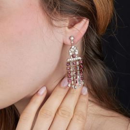 RUBY AND DIAMOND CHANDELIER EARRINGS IN 18KT WHITE GOLD