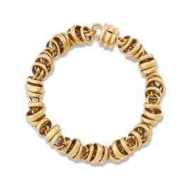 in oro giallo 18kt, composto da una serie di anelli concatenati, firmato "Pomellato", reca incisione, punzoni 750 e del fabbricante "468 MI", lungh. cm 19, gr. 62