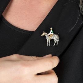 HORSE AND JOCKEY BROOCH IN 18KT WHITE GOLD