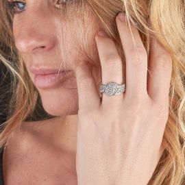 in oro bianco 18kt, impreziosito da pavé di diamanti taglio brillante per ct 0.80 circa, mis. 11/51, gr. 9