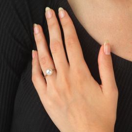 PEARL RING IN 18KT WHITE GOLD