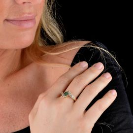 EMERALD AND DIAMOND CONTRARIE RING IN 18KT YELLOW GOLD