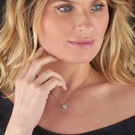 DIAMOND FLOWER-SHAPED NECKLACE IN 18KT WHITE GOLD
