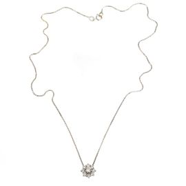 in oro bianco 18kt, pendente a forma di fiore impreziosito da diamanti taglio brillante per ct 0.60 circa, punzone 750, lungh. cm 40, dim. pendente cm 1x1, gr. 3. Corredato di certificato di garanzia "Conti Gioielli" del 4/04/2002.
