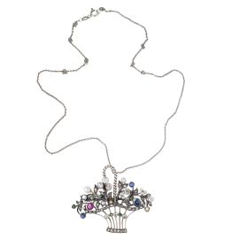 FLOWER BASKET-SHAPED NECKLACE IN SILVER AND GOLD WITH A 18KT YELLOW GOLD PIN