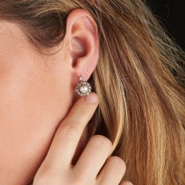 PEARL AND DIAMOND FLOWER EARRINGS IN GOLD AND SILVER