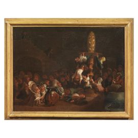 Le tre scene presentate in tre lotti distinti appartengono alla più celebre produzione di Faustino Bocchi che, pur operando in ambito bresciano e veneto, è uno dei più significativi interpreti della bambocciata. Un genere che il pittore interpreta all’interno di un clima fantasioso e carnascialesco ma con una vena di umana quotidianità e di satira rendendo protagonisti di tali scene soprattutto bizzarri nanetti, abbigliati secondo la moda dell’epoca, intenti nelle più disparate attività.