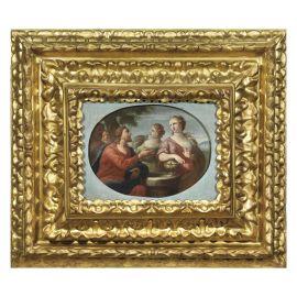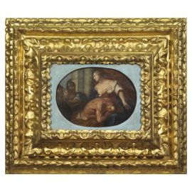 oil on canvas, within an oval passepartout, cm 16,5x20, a pair