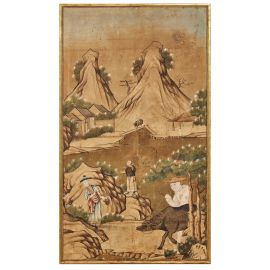清 十九世纪 人物故事图一组两件 纸本坦培拉尺幅 163,5x91厘米