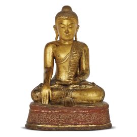 缅甸 十八至十九世纪 木胎漆地鎏金佛坐像 高 51,6厘米