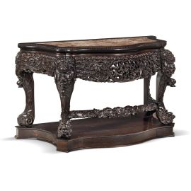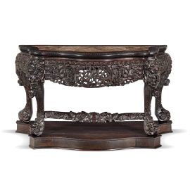 UNA CONSOLLE CON UN TAVOLO E QUATTRO SGABELLI, CINA, DINASTIA QING, SEC. XVIII-XIX