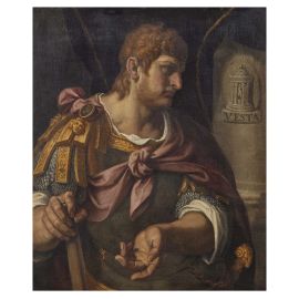 Ricordata per la prima volta da Bartolomeo Dal Pozzo nel palazzo dei Marchesi Sagramoso a S. Fermo, la serie dei Dodici Cesari dipinta da Felice Brusasorzi negli ultimi anni del Cinquecento costituisce la personalissima interpretazione dell’artista veronese – o più verosimilmente del suo committente – di un tema particolarmente caro alla cultura umanistica.
