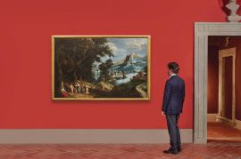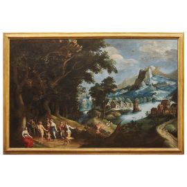Proveniente da palazzo Rospigliosi e più specificamente dalla collezione della principessa Ottavia, il dipinto era da sempre in coppia con il Paesaggio con caccia al cervo di Paul Bril, anch’esso qui in catalogo e, come quello, a lui tradizionalmente riferito.