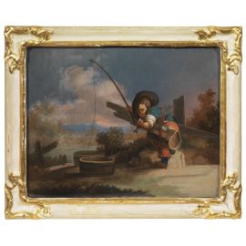 VENETIAN SCHOOL, 18TH CENTURY, RUSTIC SCENES WITH LITTLE PEASANTS, SIX PAINTINGS OIL ON GLASS, 25X31 CM