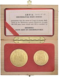 CECOSLOVACCHIA. REPUBBLICA SOCIALISTA (1960-1990). ZECCA DI KREMNITZ. SET DI DUE MONETE IN ORO (10 E 5 DUCATI) DELLA SERIE “WALDSTEIN” IN ASTUCCIO ORIGINALE E CERTIFICATO DI EMISSIONE. SERIE NUMERATA 40 SU UNA TIRATURA DI 500 ESEMPLARI