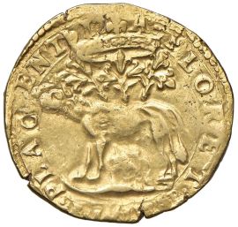 Au gr.12,74 Busto corazzato a s. R/ Lupa gradiente a s. Sullo sfondo tre piante di gigli sormontate da corona. MIR 1137/1 o /2 (senza data)