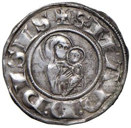 Ar gr.1,68 F tra quattro rosette R/ Mezza figura della Beata Vergine con il Bambino. MIR 394